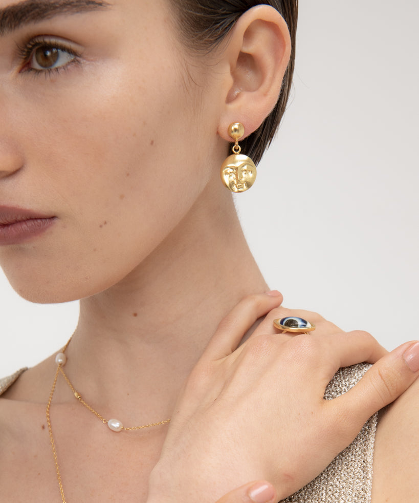 Moon Face Gold Drop Earrings | Sustainable Jewellery by Ottoman Hands