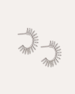 Reminding us of a petite sun, these small gold hoops have an eye-catching design. Handmade from 21ct gold plated brass, these boho earrings have been finished with a chic hand-hammered texture. Wear these sun earrings to brighten up a look. Ear posts are plated on sterling silver and secured with a butterfly clasp.