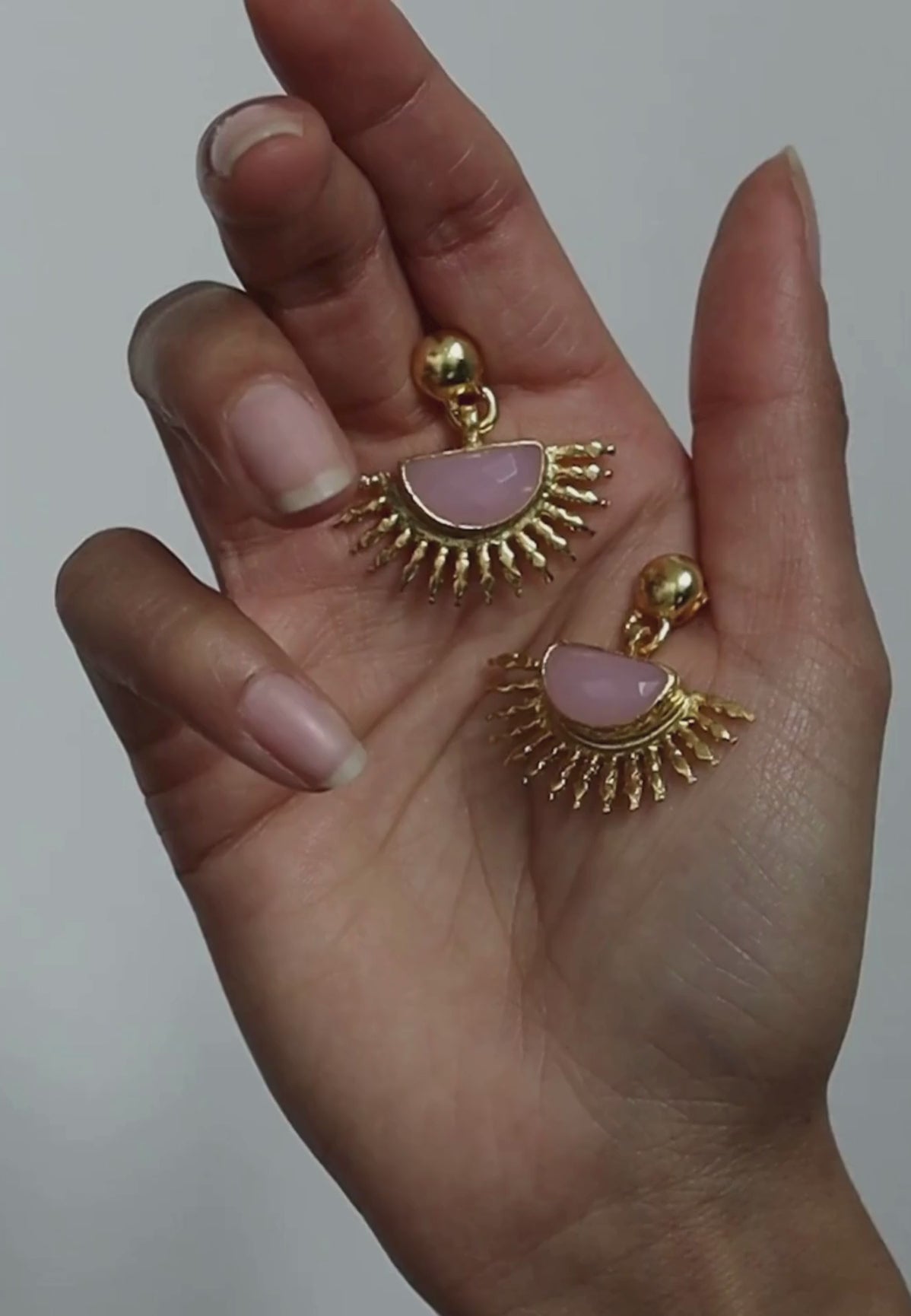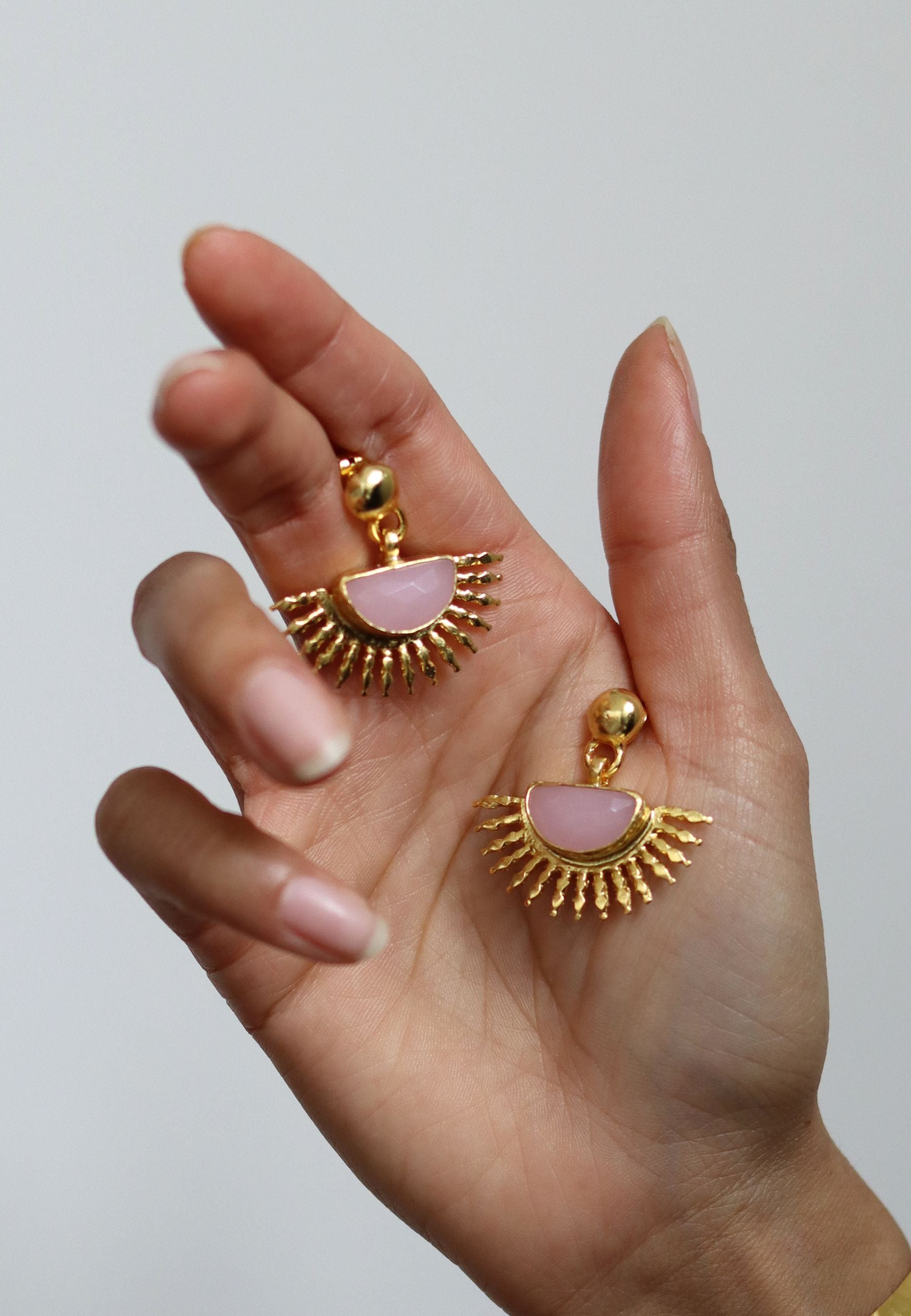 Sunrise Rose Quartz Drop Stud Earrings | Ottoman Hands Jewellery