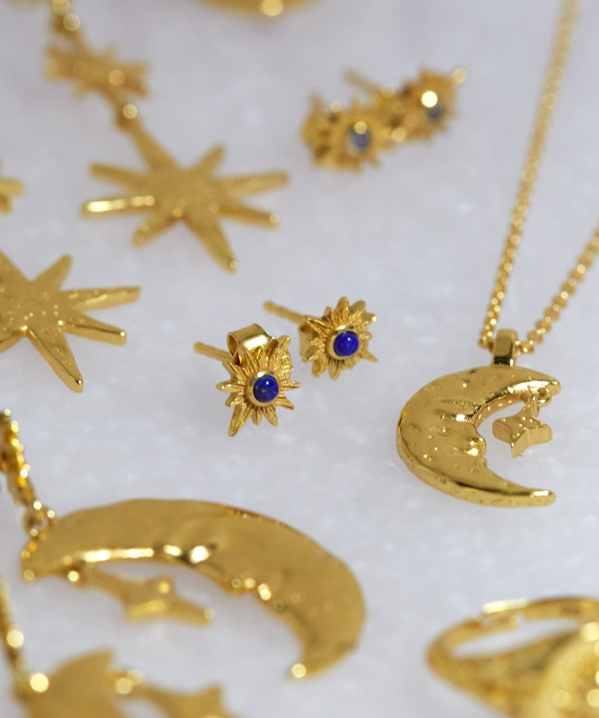 All our jewellery is handcrafted in small batches by our artisan workshops. We use sustainable materials, such as 21ct gold-plated recycled brass or 18ct gold plated recycled sterling silver, giving each piece a high quality finish that lasts.