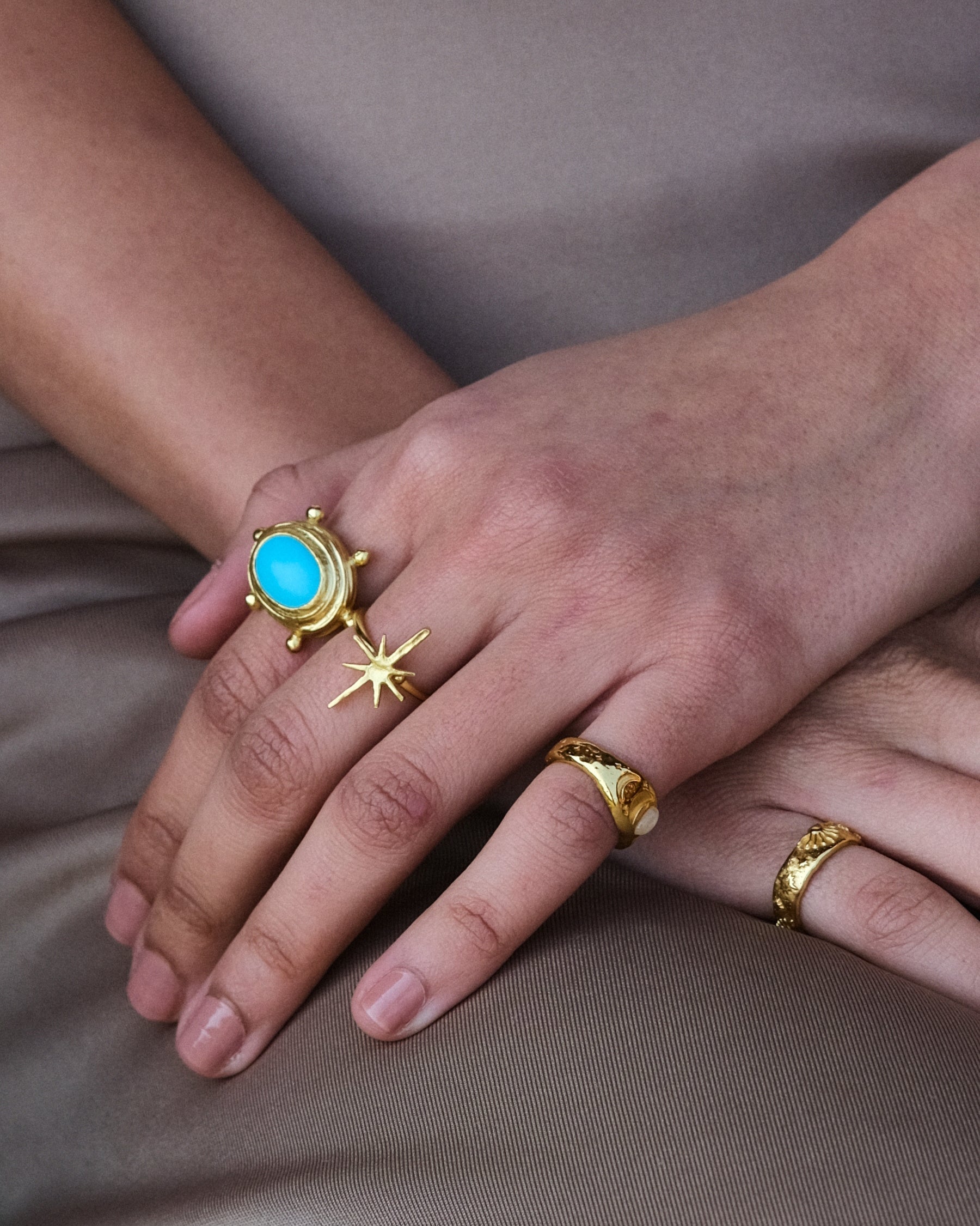 We use either 21ct gold-plated recycled brass or 18ct gold-plated recycled sterling silver, without compromising on the beauty and quality of our pieces.