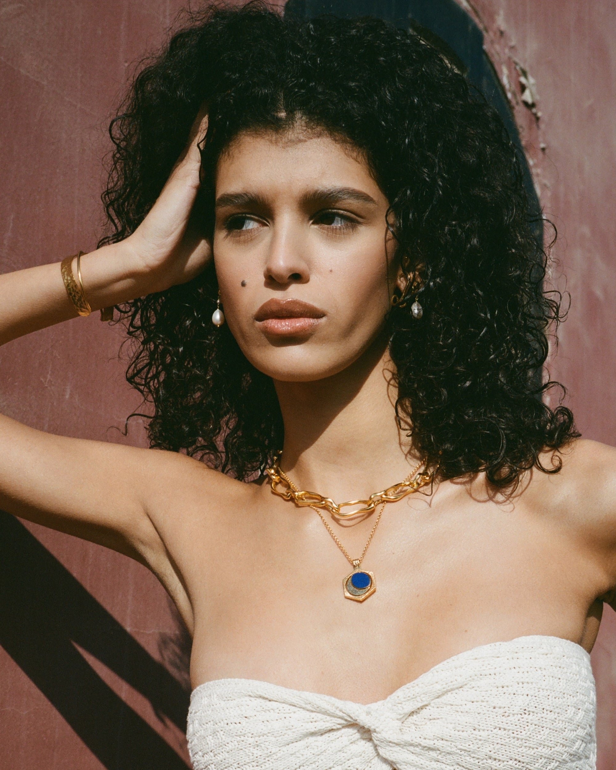 We use either 21ct gold-plated recycled brass or 18ct gold-plated recycled sterling silver, without compromising on the beauty and quality of our pieces.